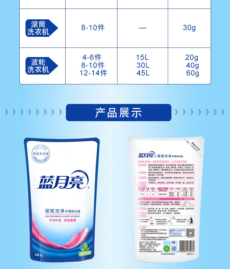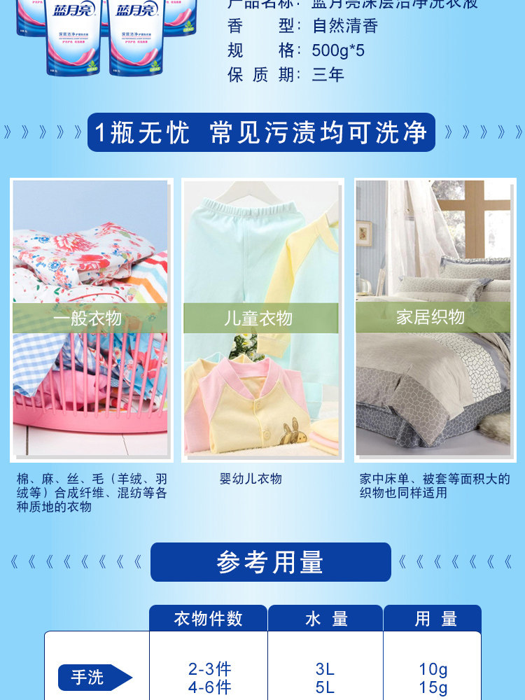 商品名称:蓝月亮 自然清香 深层洁净 500g 洗衣液袋装