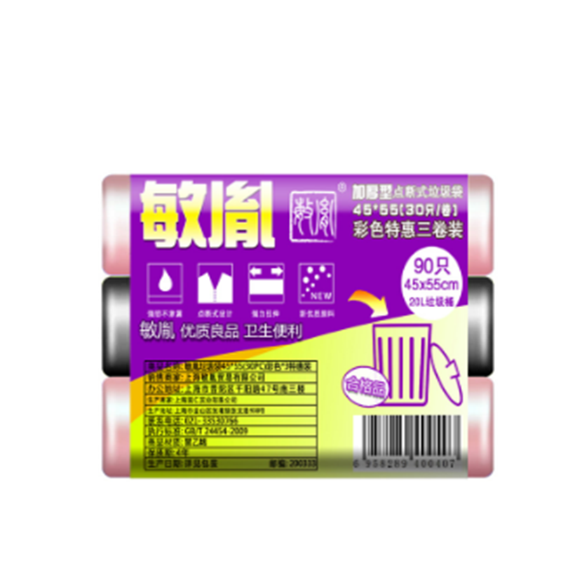 商品名称:敏胤 45*55cm 垃圾袋 30只*3卷/包 彩色