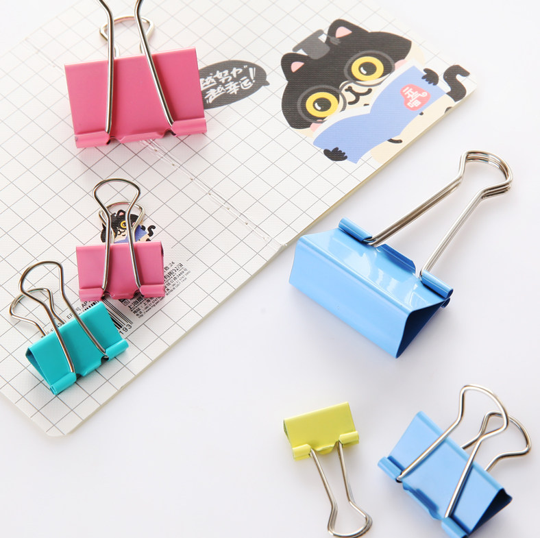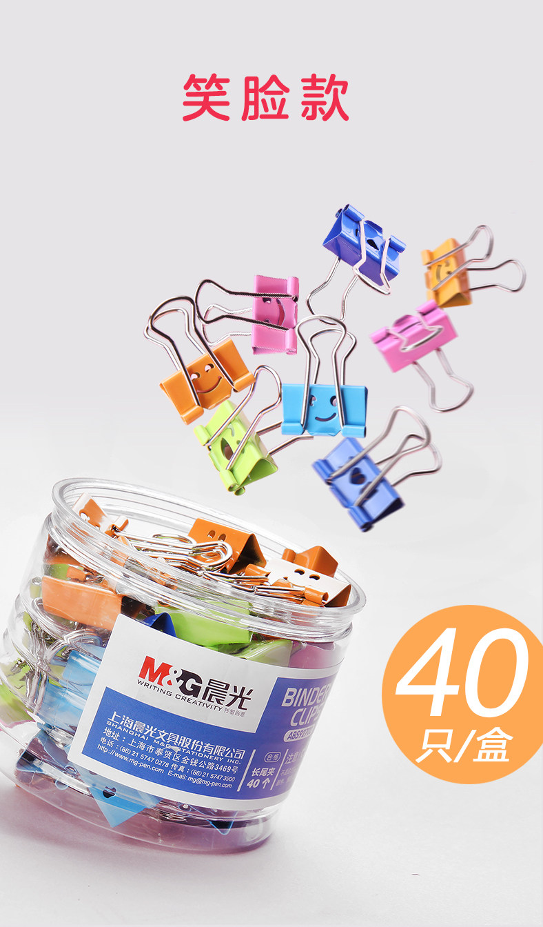 齐心 B3687 笑脸彩色长尾票夹分类长尾夹文件夹子彩色长尾夹票夹燕尾夹小夹子