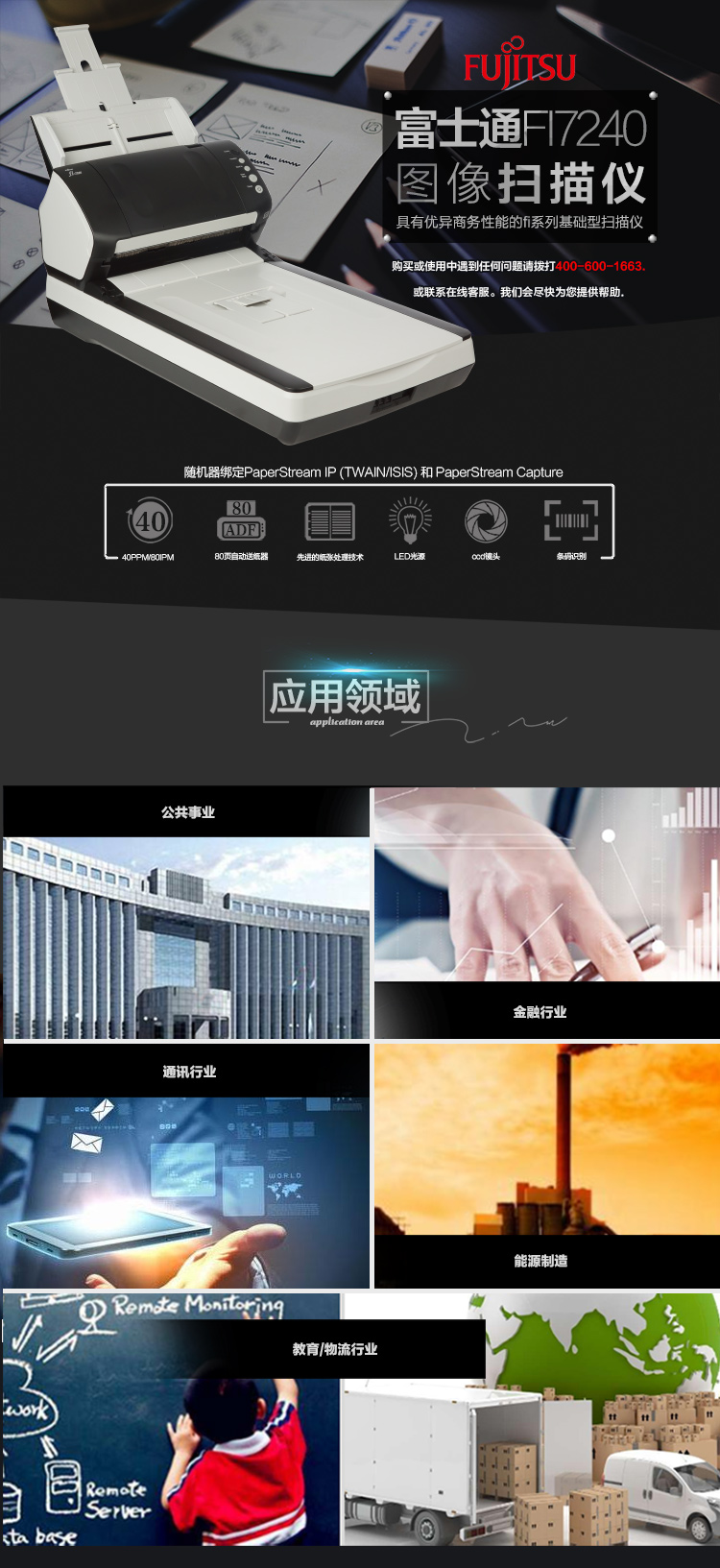 商品名称:★ 富士通/Fujitsu A4高速双面自动进纸带平板 扫描仪 (计价单位:台) FI-7240