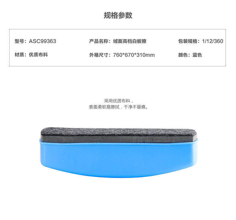 商品名称:晨光 带磁吸白板擦 蓝色 ASC99363