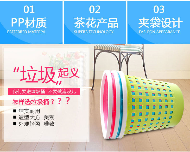 商品名称:茶花 CH-B套袋纸篓(Φ24CM) 绿色 1211