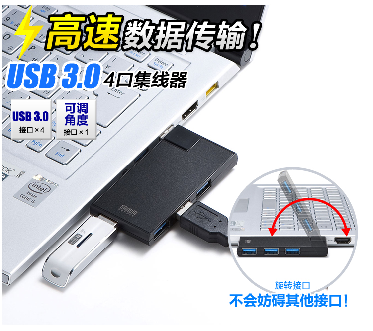 商品名称:山业/SANWA USB3.0旋转集线器 USB-3HSC1BK