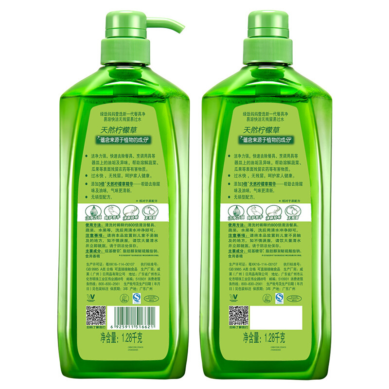 商品名称:绿劲 餐具净 天然柠檬草 双支装 1.28kg×2 妈妈1选