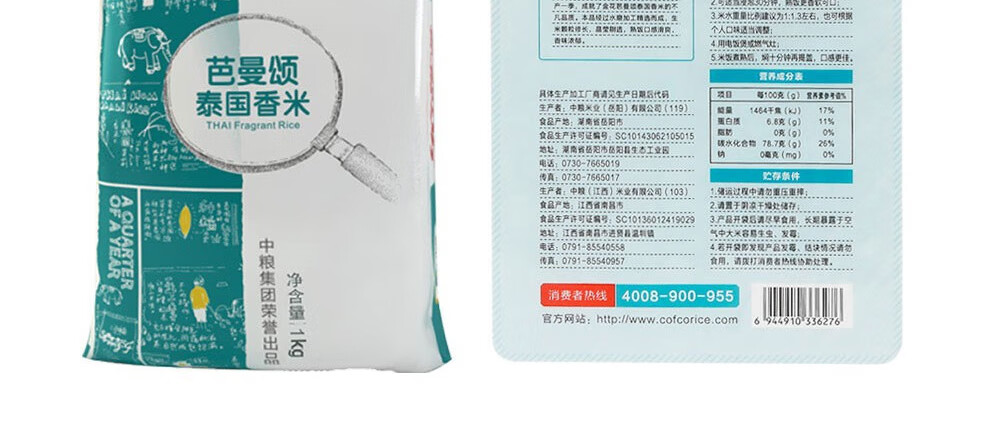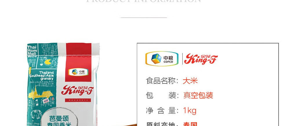 商品名称:中粮 金花芭曼颂泰国香米 1kg