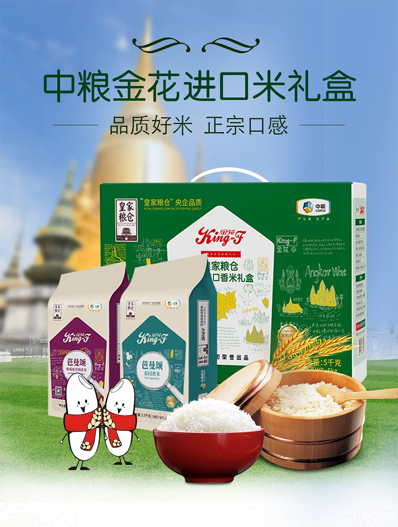 商品名称:中粮 皇家粮仓金花进口香米礼盒 5kg