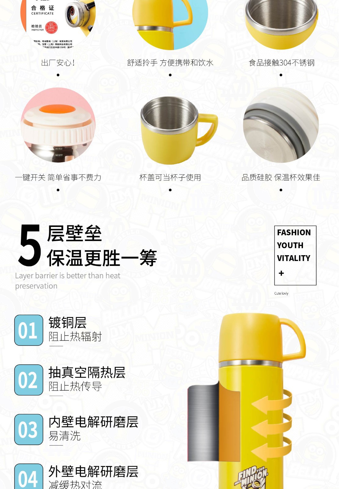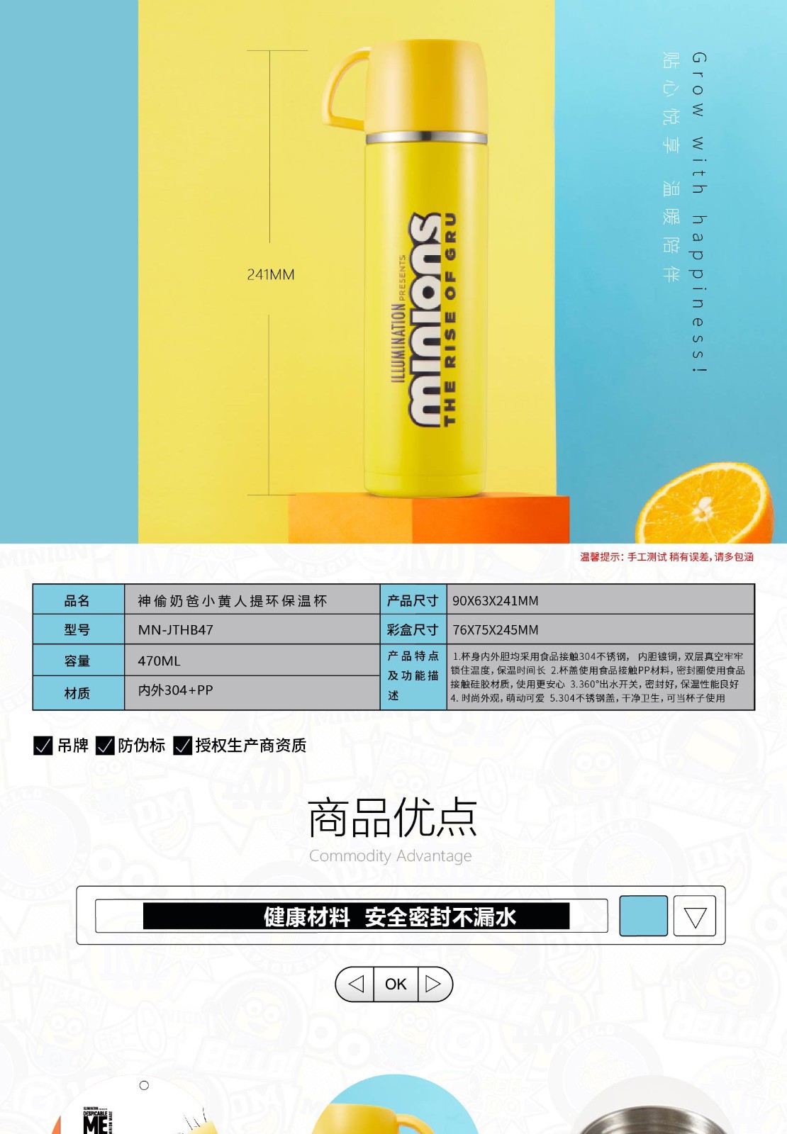 商品名称:神偷奶爸 小黄人提环保温杯 MN-JTHB47