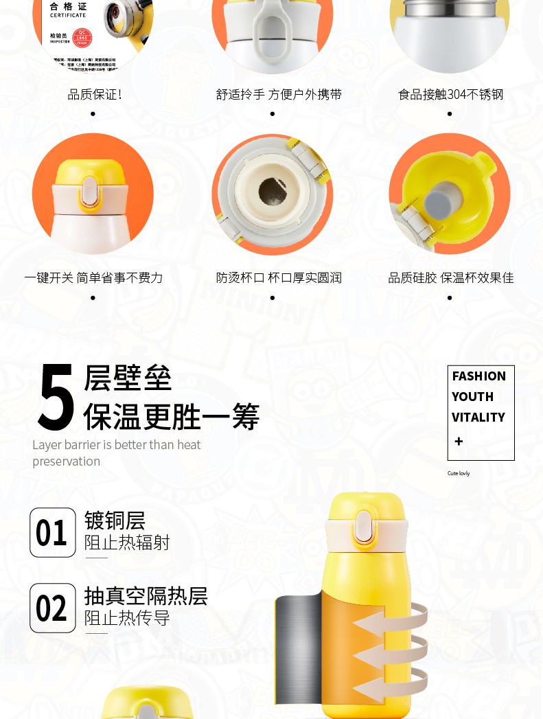 商品名称:神偷奶爸 小黄人提手弹盖杯 MN-JTTB35