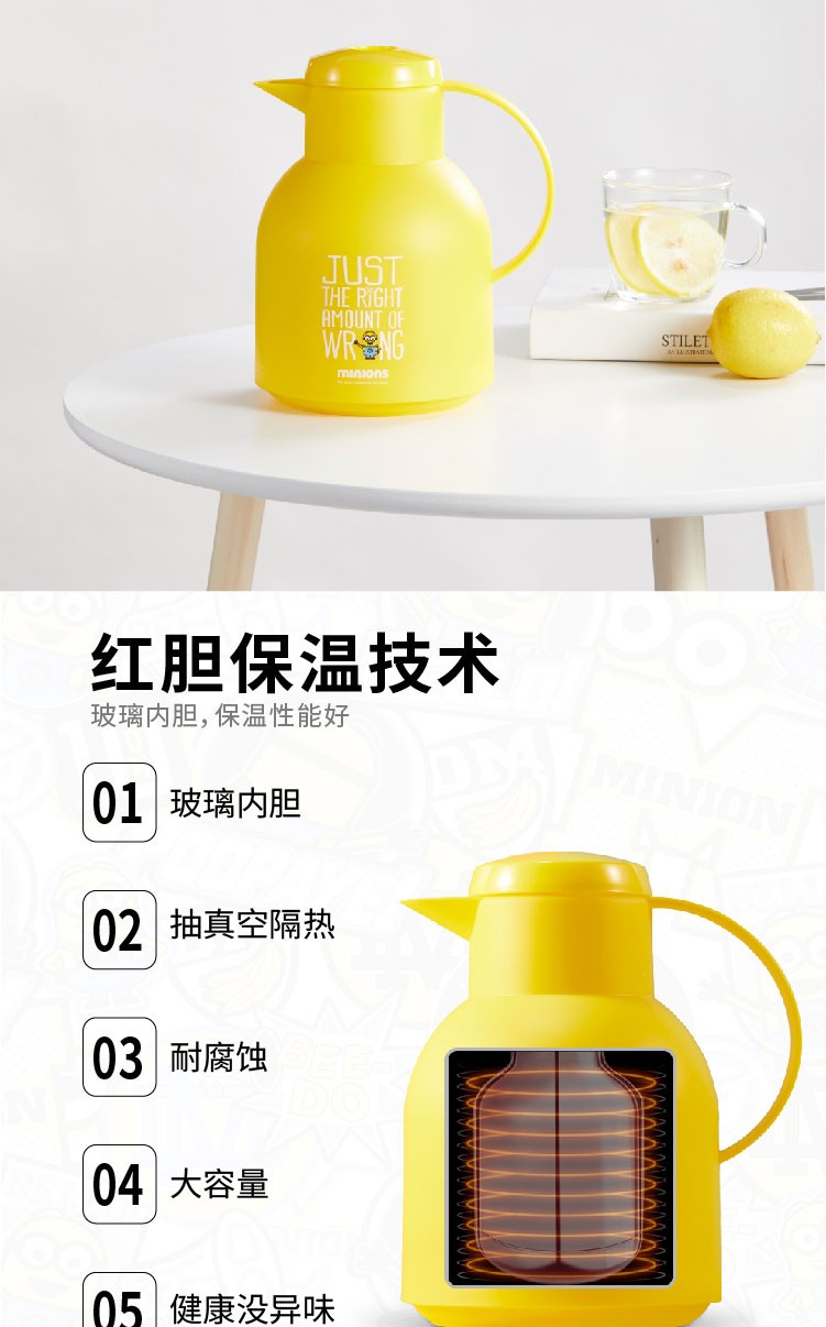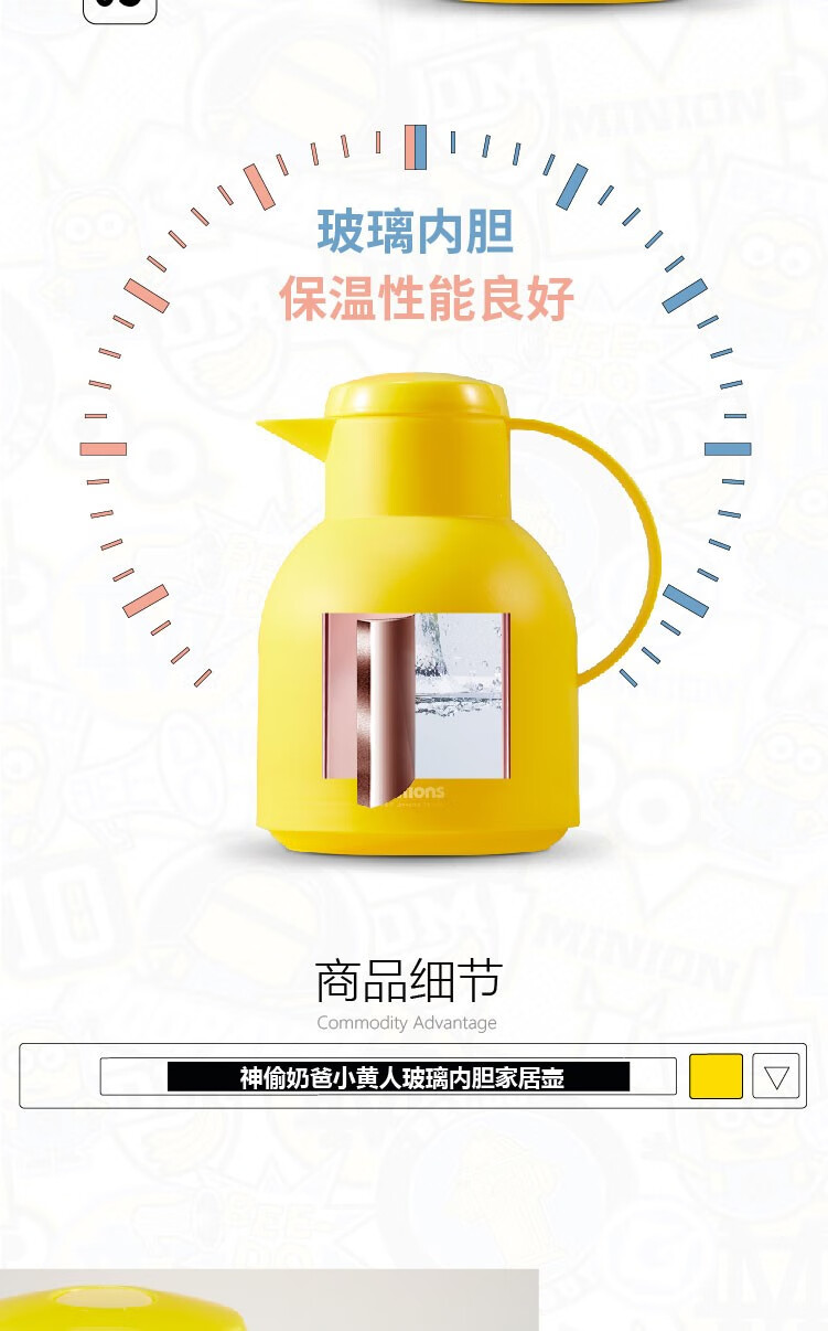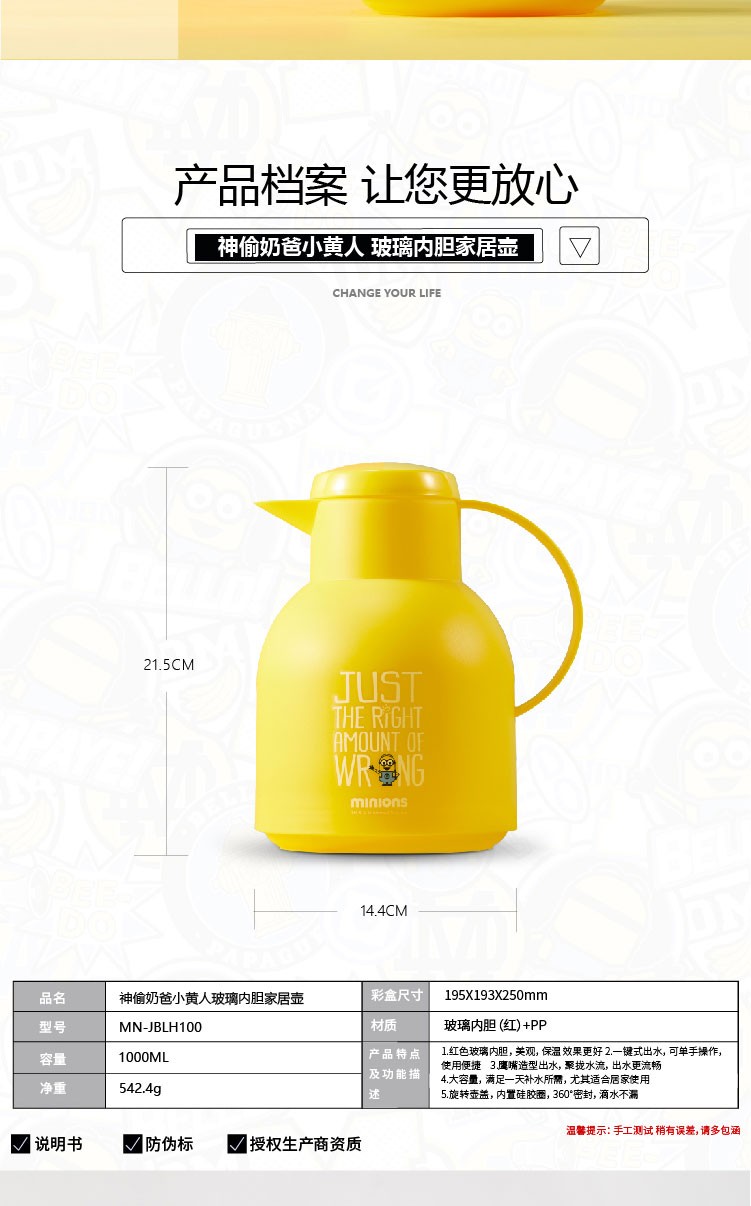 商品名称:神偷奶爸 小黄人玻璃内胆家居壶 MN-JBLH100