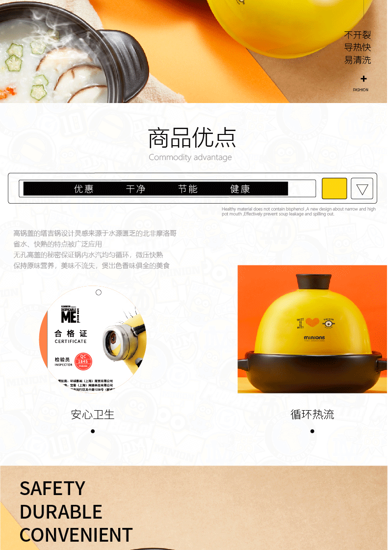 商品名称:神偷奶爸 小黄人陶瓷耐热塔吉锅 MN-JTJG150