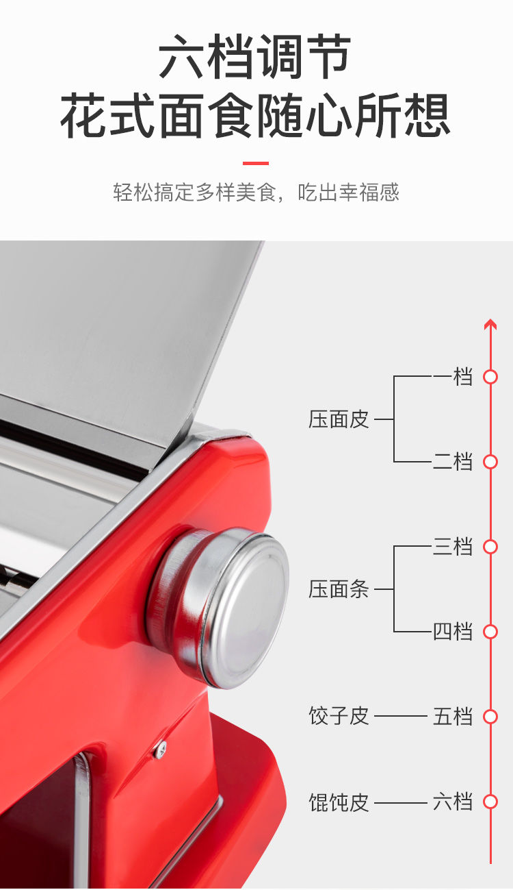 商品名称:妙媳妇 手动压面机小型不锈钢面条机擀面皮厨房饺子馄饨皮多功能