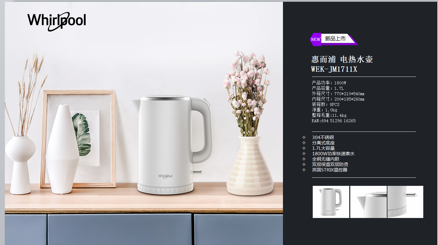 商品名称:惠而浦 电热水壶 WEK-JM1711X