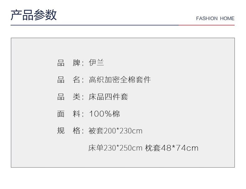 商品名称:伊兰 高织加密全棉套件 YL-1091