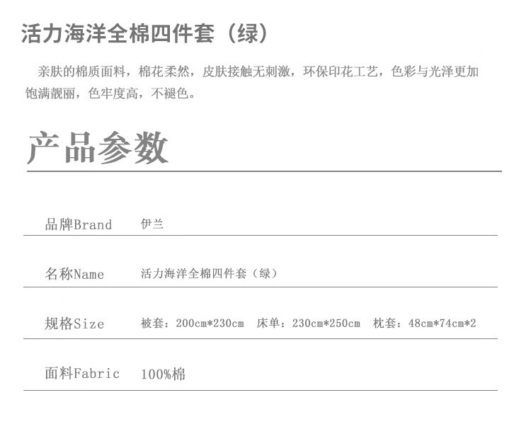商品名称:伊兰 活力海洋全棉四件套 YL-1195
