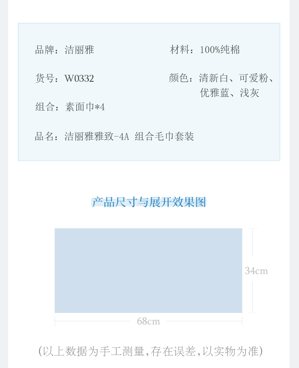 商品名称:洁丽雅 毛巾雅致-4A 4条