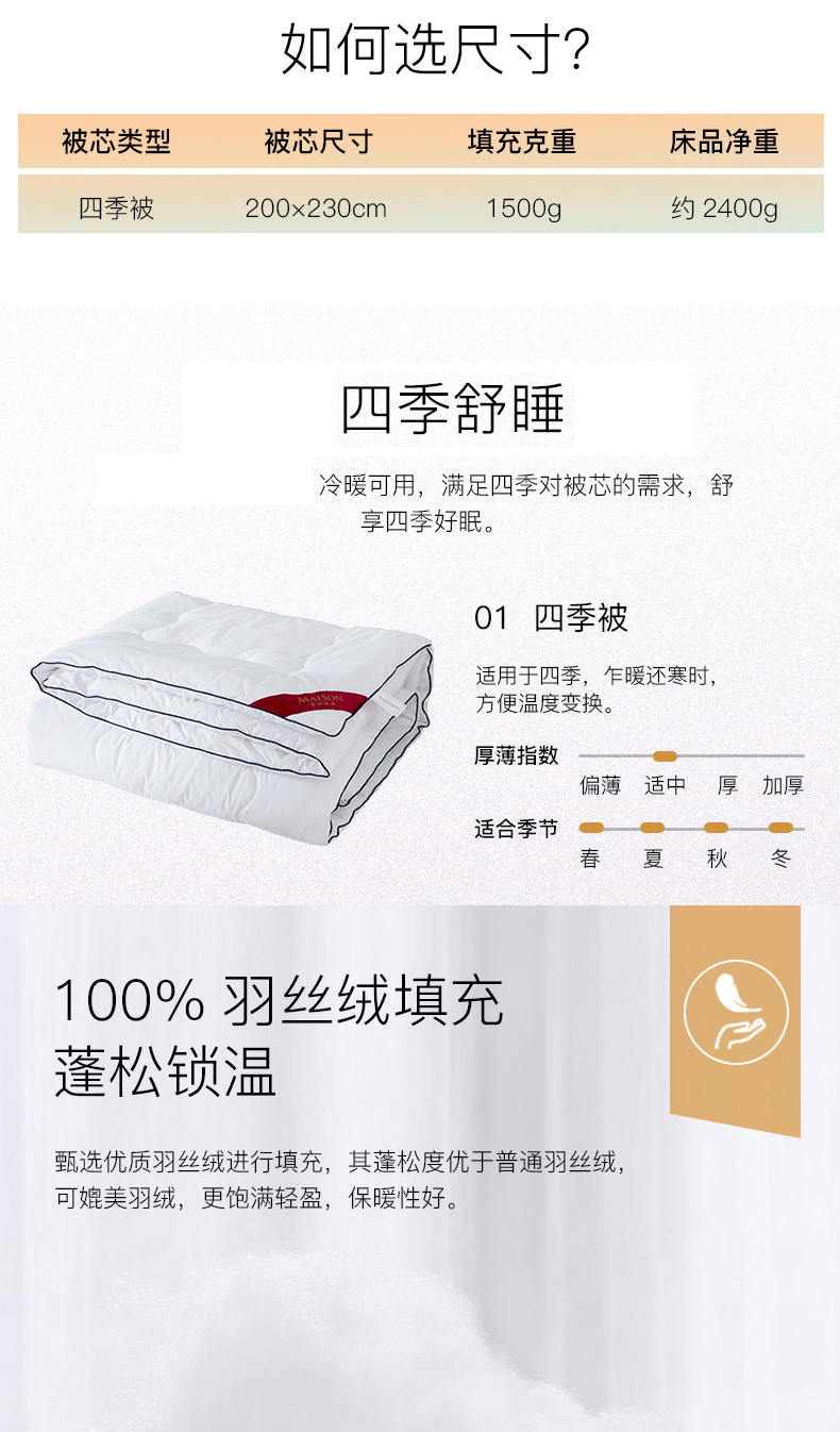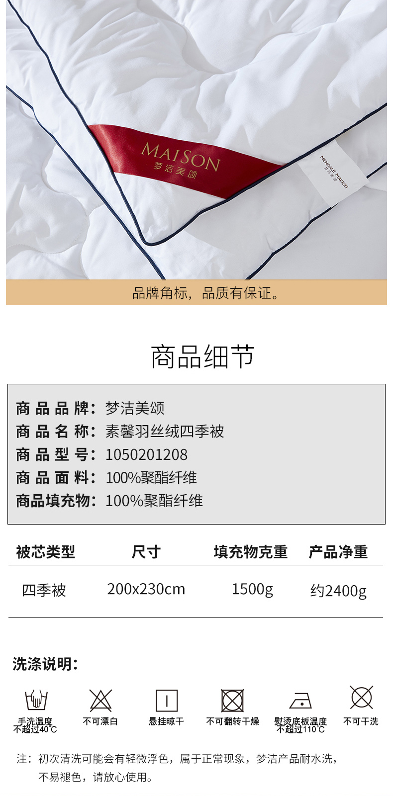 商品名称:梦洁家纺 素馨羽丝绒四季被 1050201208