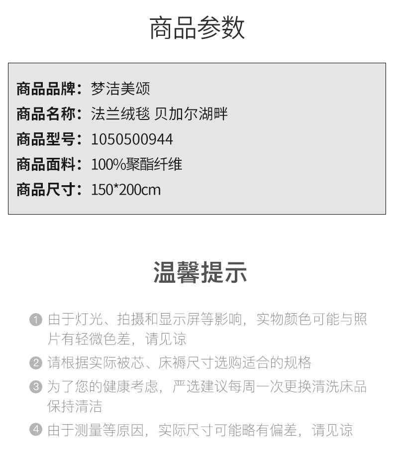 商品名称:梦洁家纺 法兰绒毯 贝加尔湖畔 1050500944