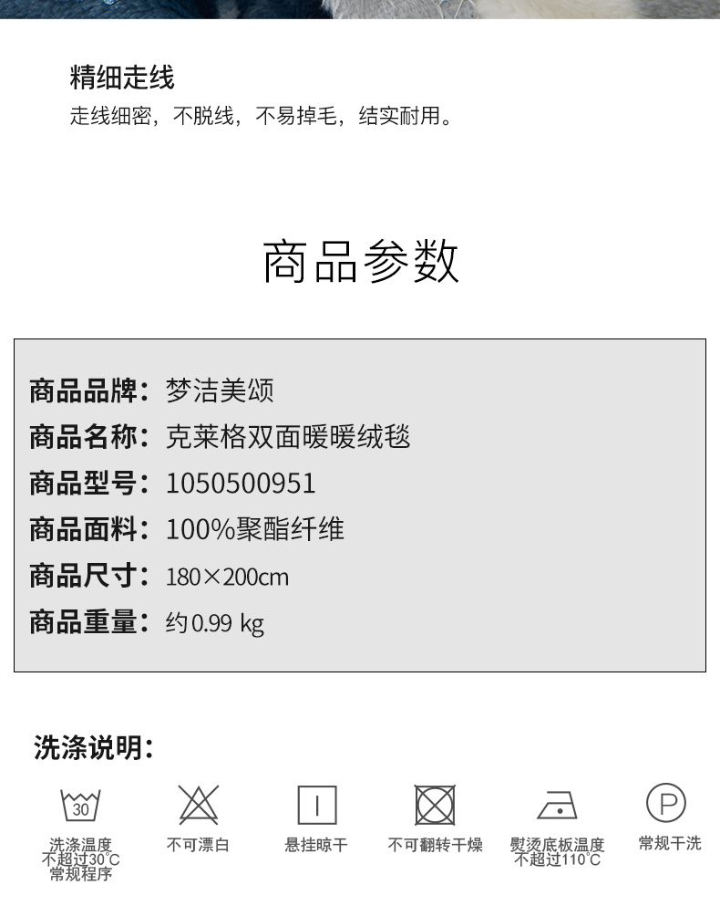 商品名称:梦洁家纺 克莱格双面暖暖绒毯 1050500951