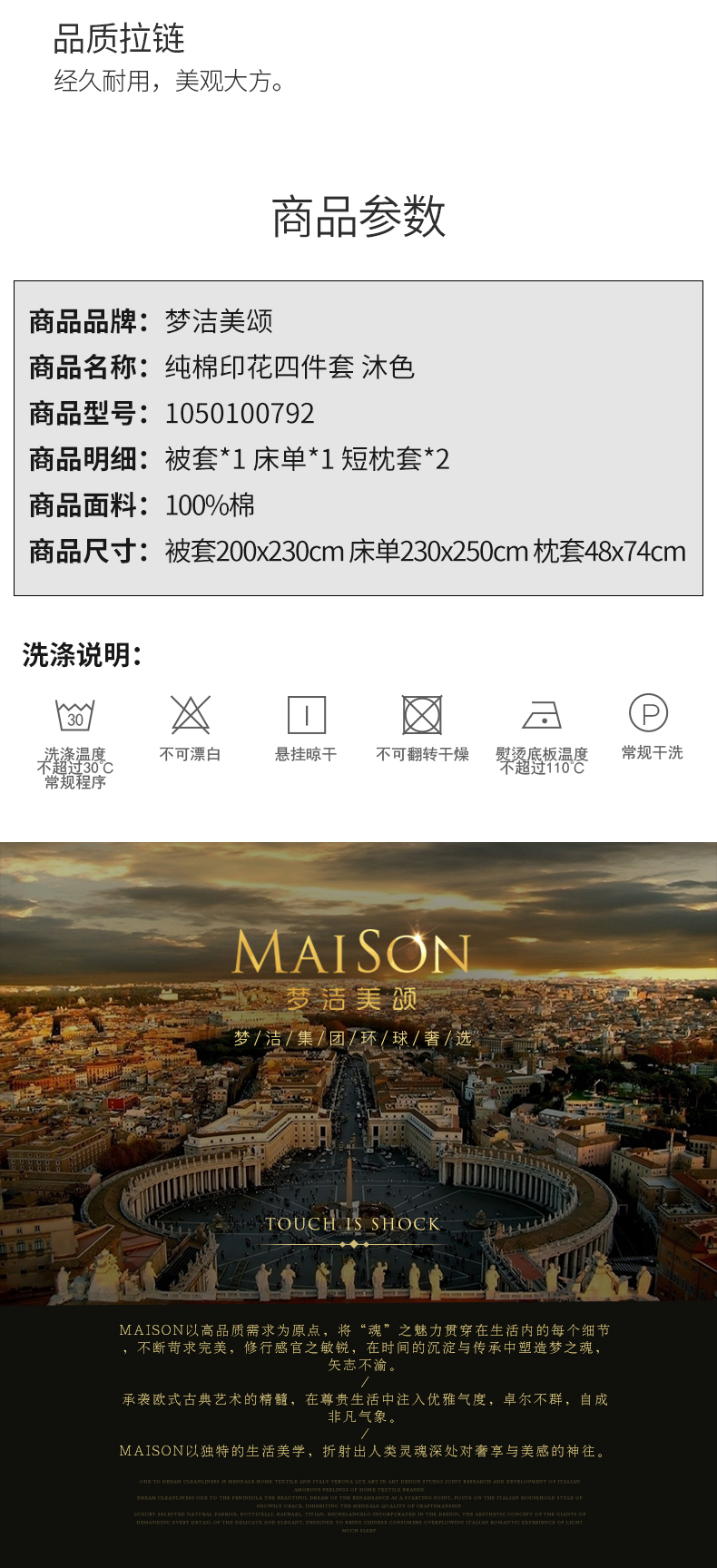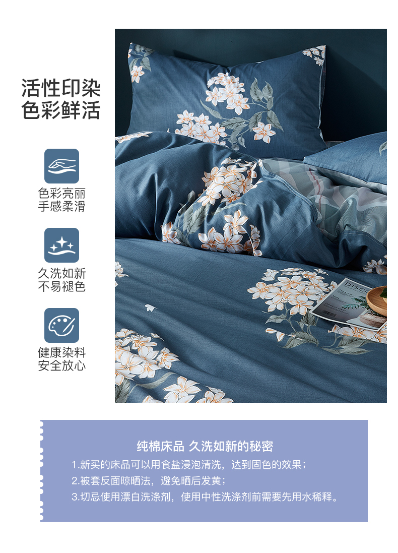 规格:被套200*230cm 床单230*250cm 枕套48*74cm