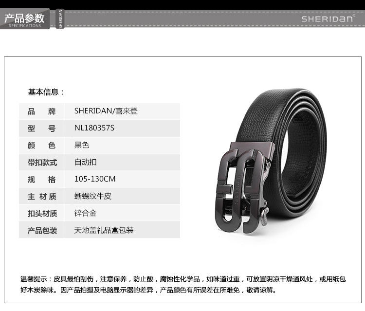 商品名称:喜来登 皮带男自动扣青年韩版百搭简约腰带 NL180357S