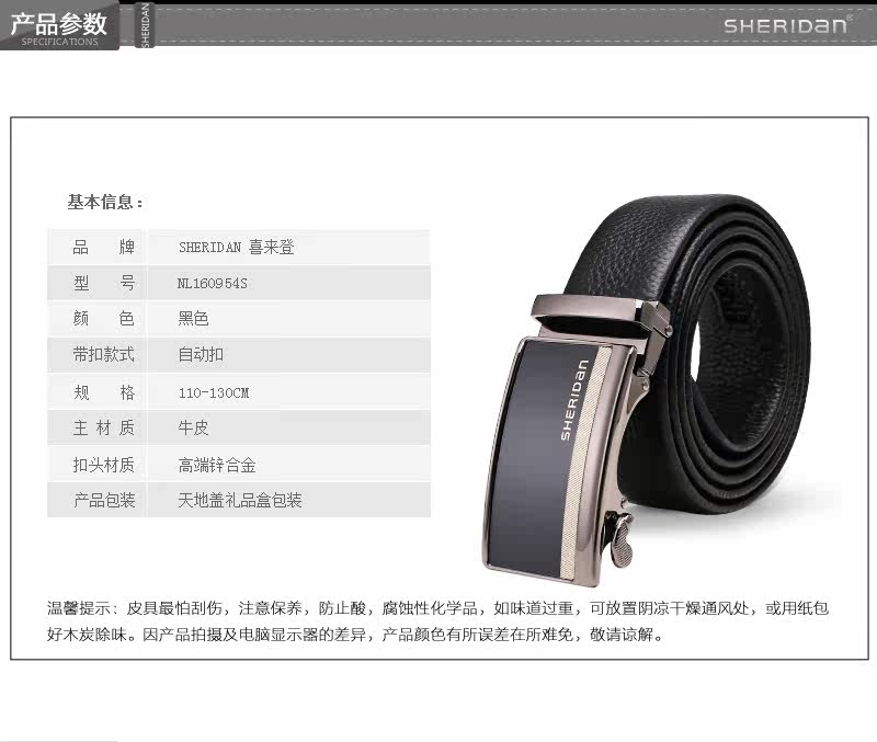 商品名称:喜来登 男士皮带商务休闲中年平滑扣腰带 NL160954S
