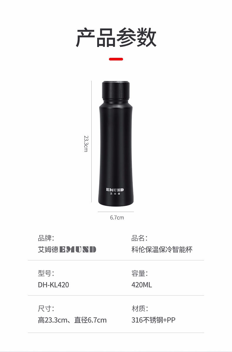 商品名称:艾姆德/EMUND 科伦保温保冷智能杯 黑色