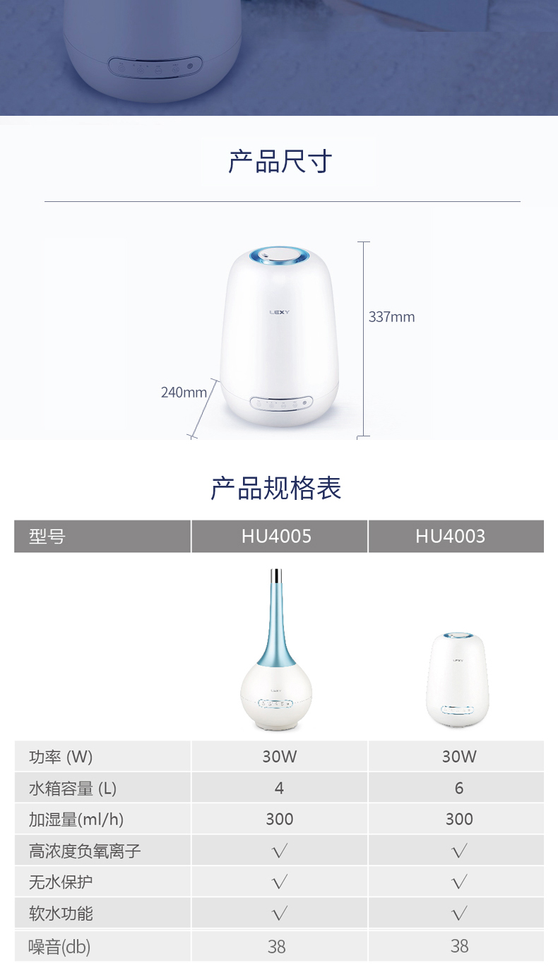 商品名称:莱克/LEXY 加湿器 蓝色 HU4003