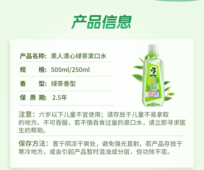 商品名称:黑人/DARLIE 清心绿茶 漱口水 250ml