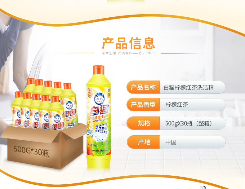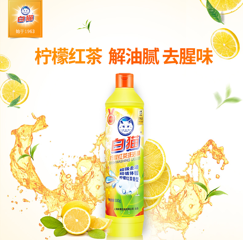 商品名称:白猫 柠檬红茶洗洁精500g(整箱装30瓶)