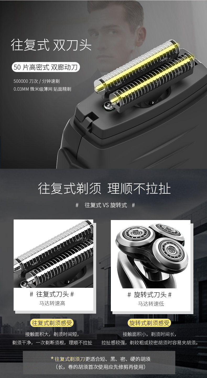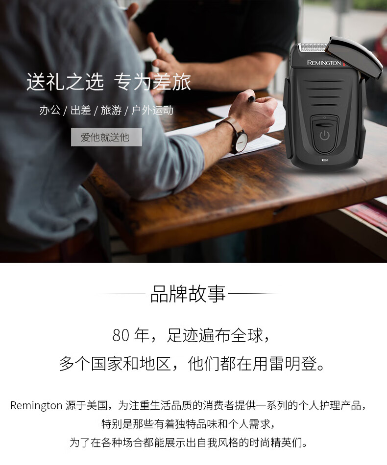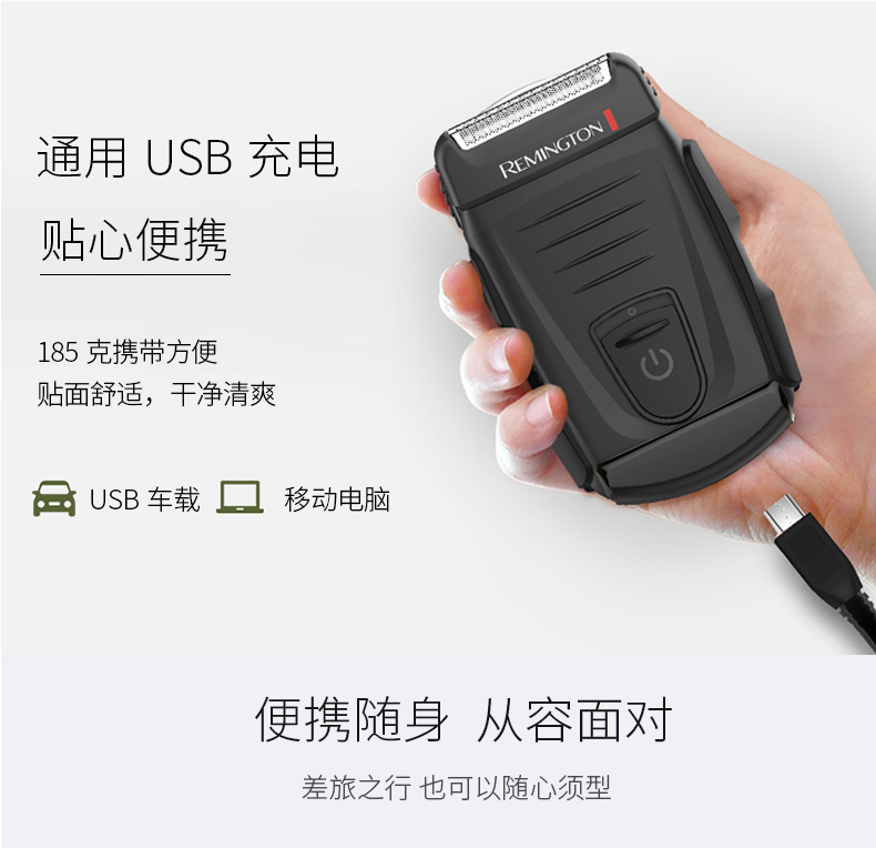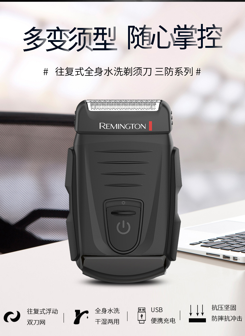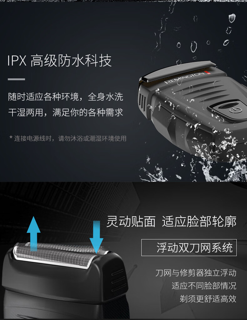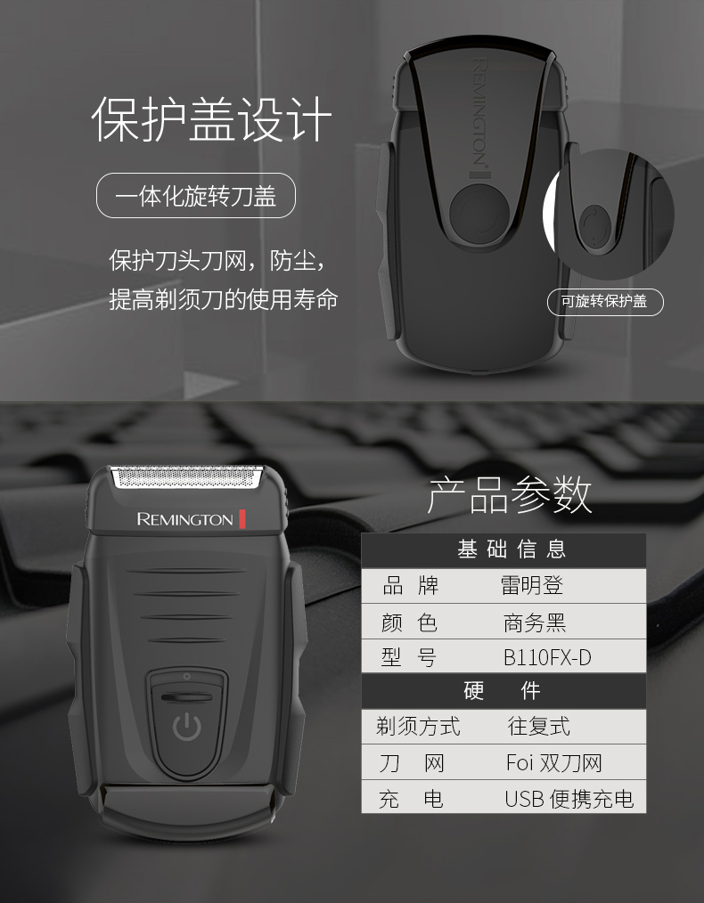 商品名称:雷明顿/Remington 电动剃须刀便携式往复式双刀头全身水洗电动刮胡刀 黑色 B110FX-D