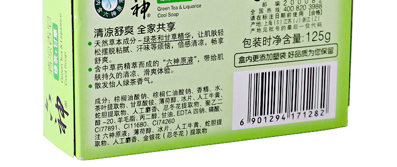 商品名称:六神 清凉香皂绿茶甘草 125g