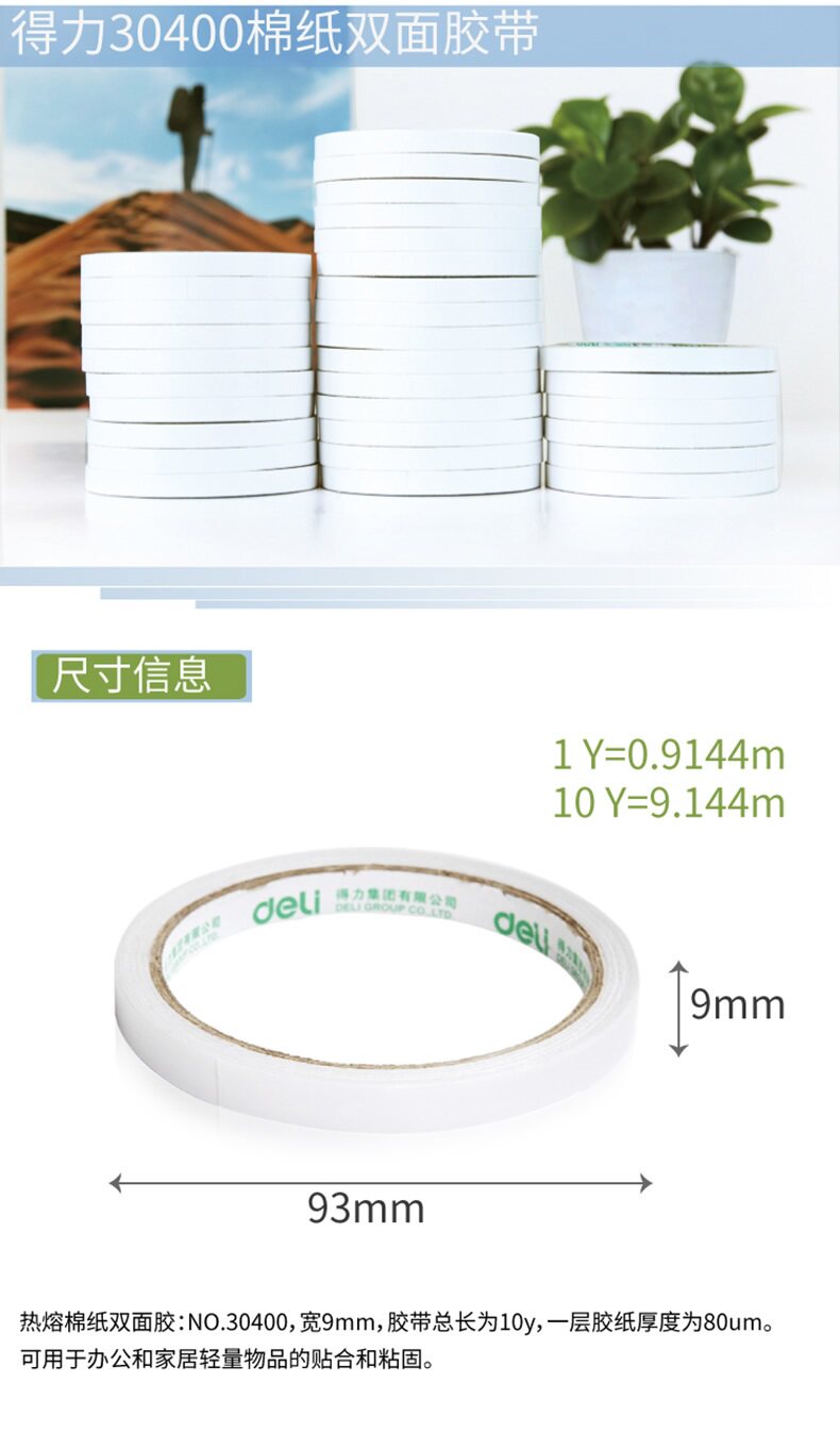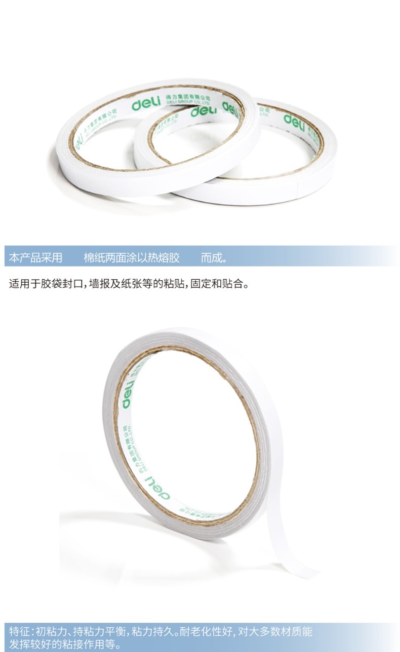 商品名称:得力/deli 30401 棉纸双面胶带 24个/袋 12mm*10y