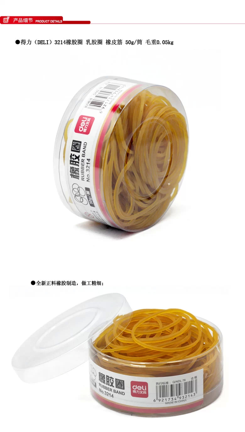 商品名称:得力3214橡胶圈(黄)(50g/筒)(单位:筒)
