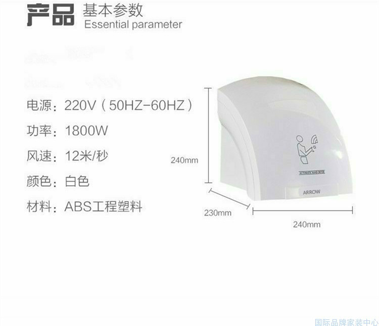 商品名称:箭牌卫浴 干手器烘干机 HD1800W