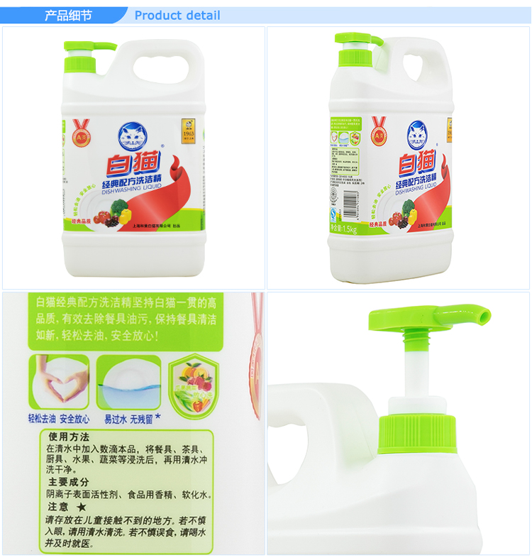商品名称:白猫 经典配方洗洁精(新盖)1500g