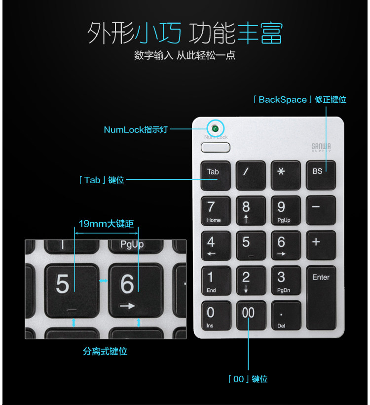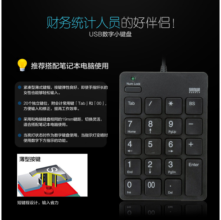 商品名称:山业/SANWA USB数字巧克力键盘 NT-18USV