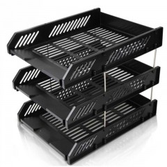得力(deli)-9209-三层镂空收纳文件座-自由拆卸组装-三层文件盘/文件框牢固耐用-桌面文件管理-黑色-单位:个