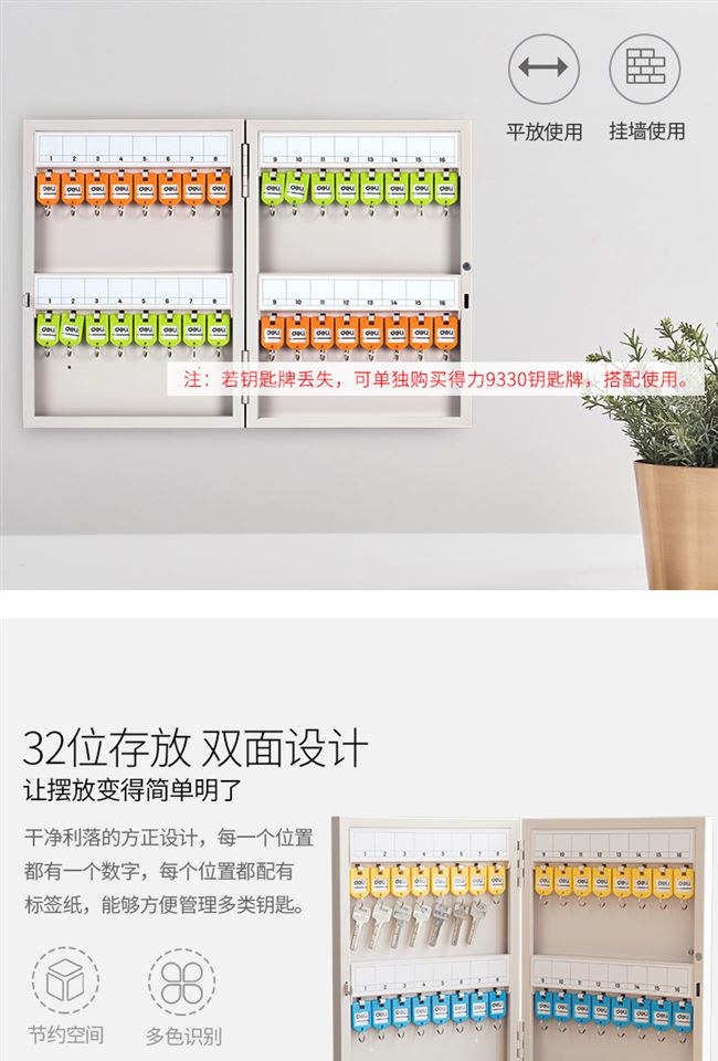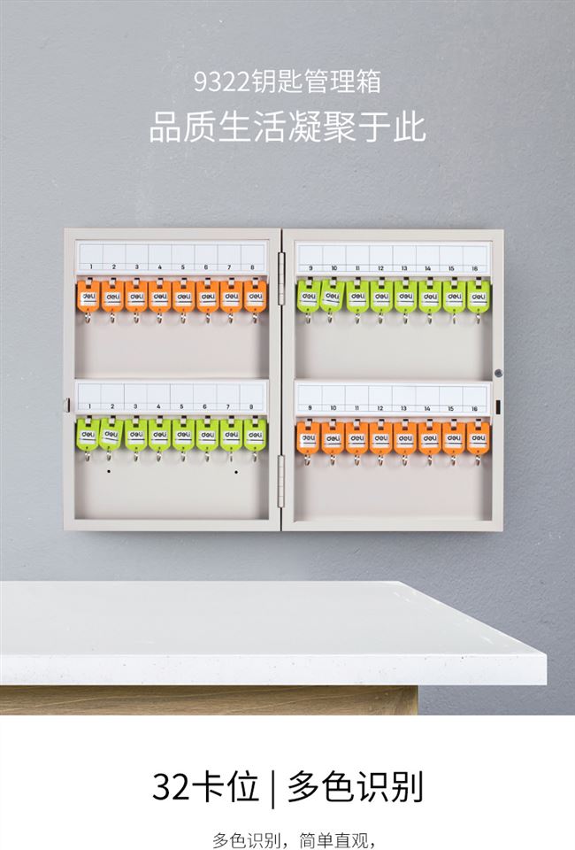 得力/deli 32位 钥匙管理箱 卡其色 9322