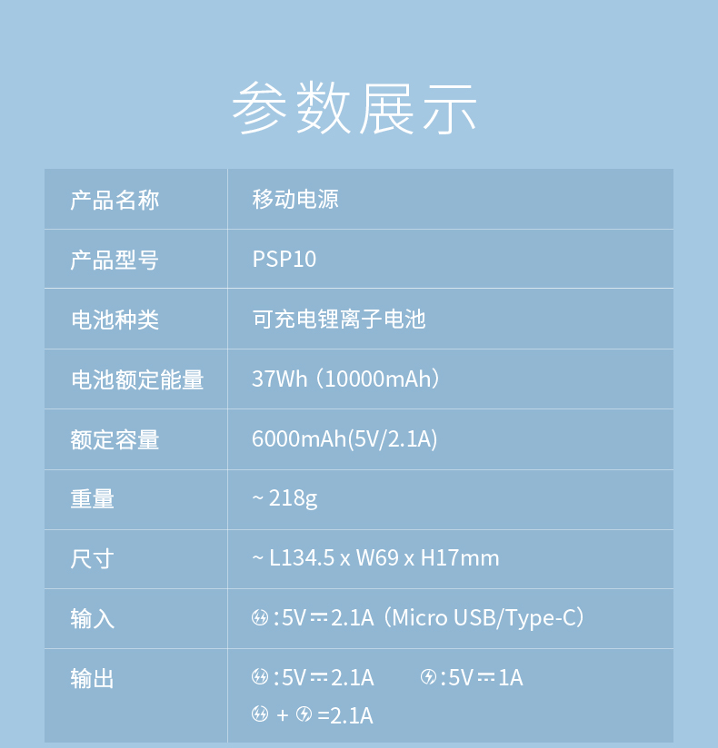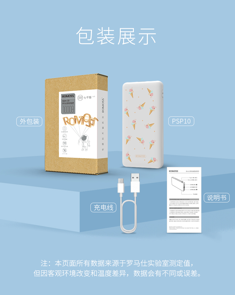 商品名称:罗马仕/ROMOSS 10000毫安充电宝 PSP10