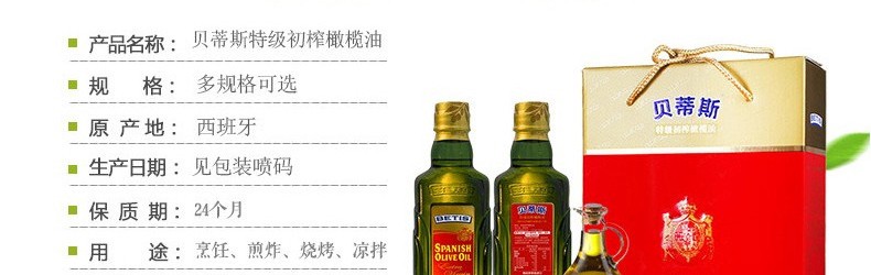商品名称:贝蒂斯 特级初榨橄榄油750ML礼盒