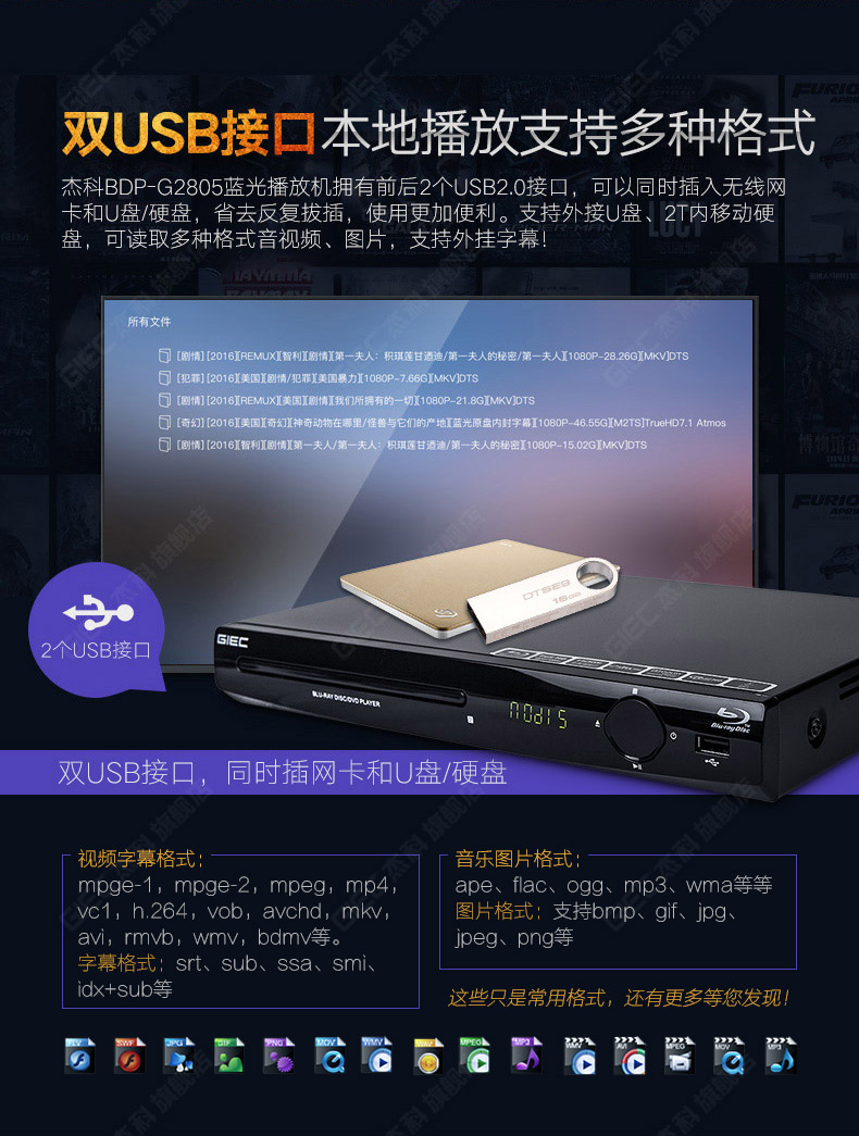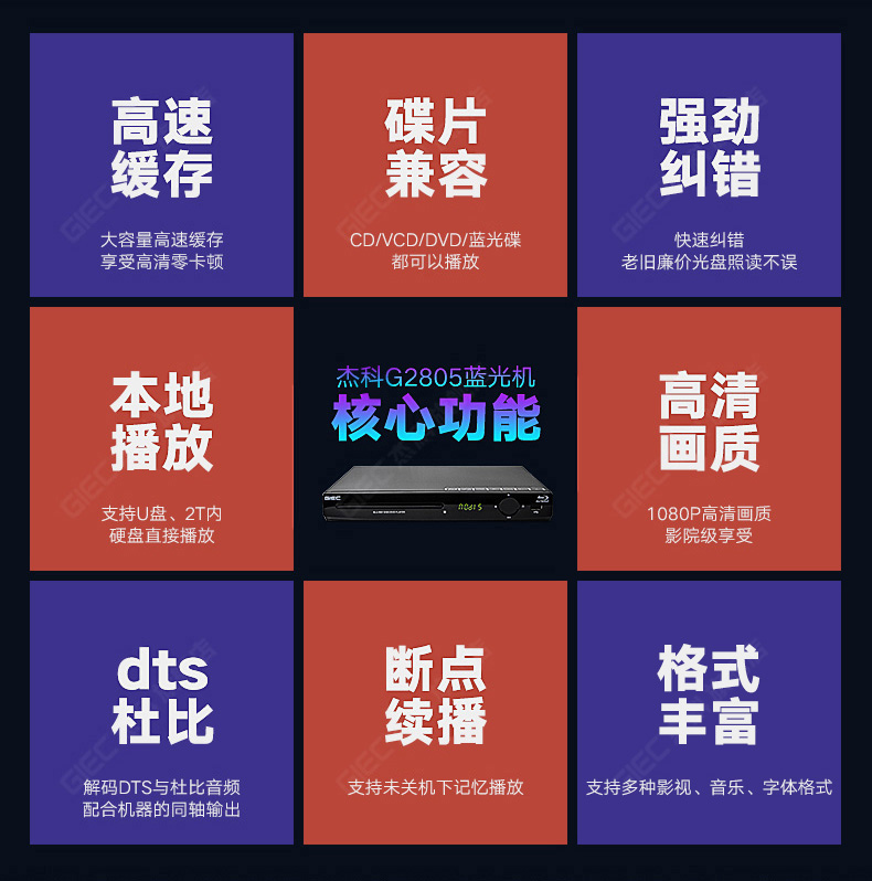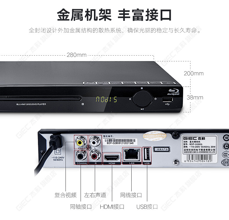 商品名称:杰科 GIEC 蓝光 DVD播放机 BDP-G2805