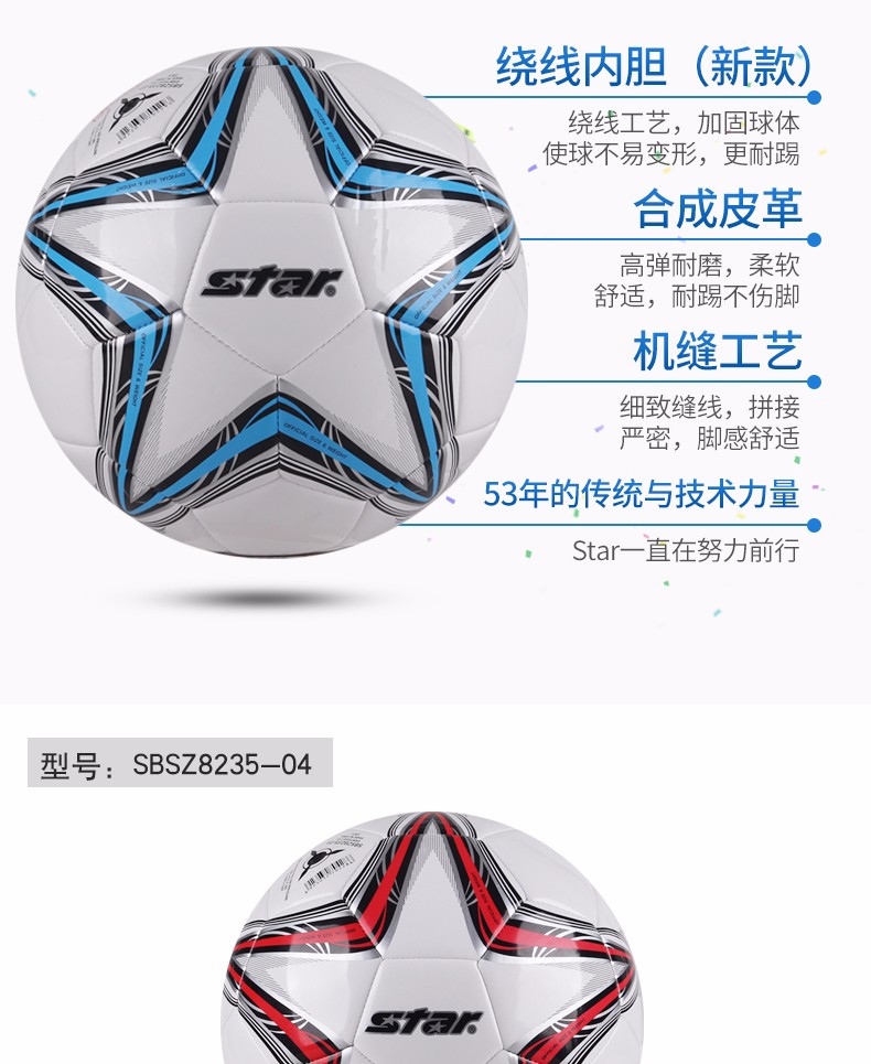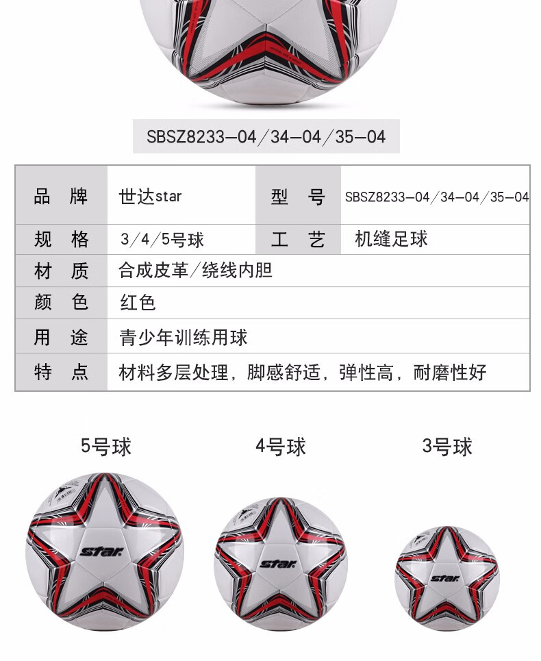 商品名称:世达 STAR PVC 5号 机缝 足球 SB8235-07