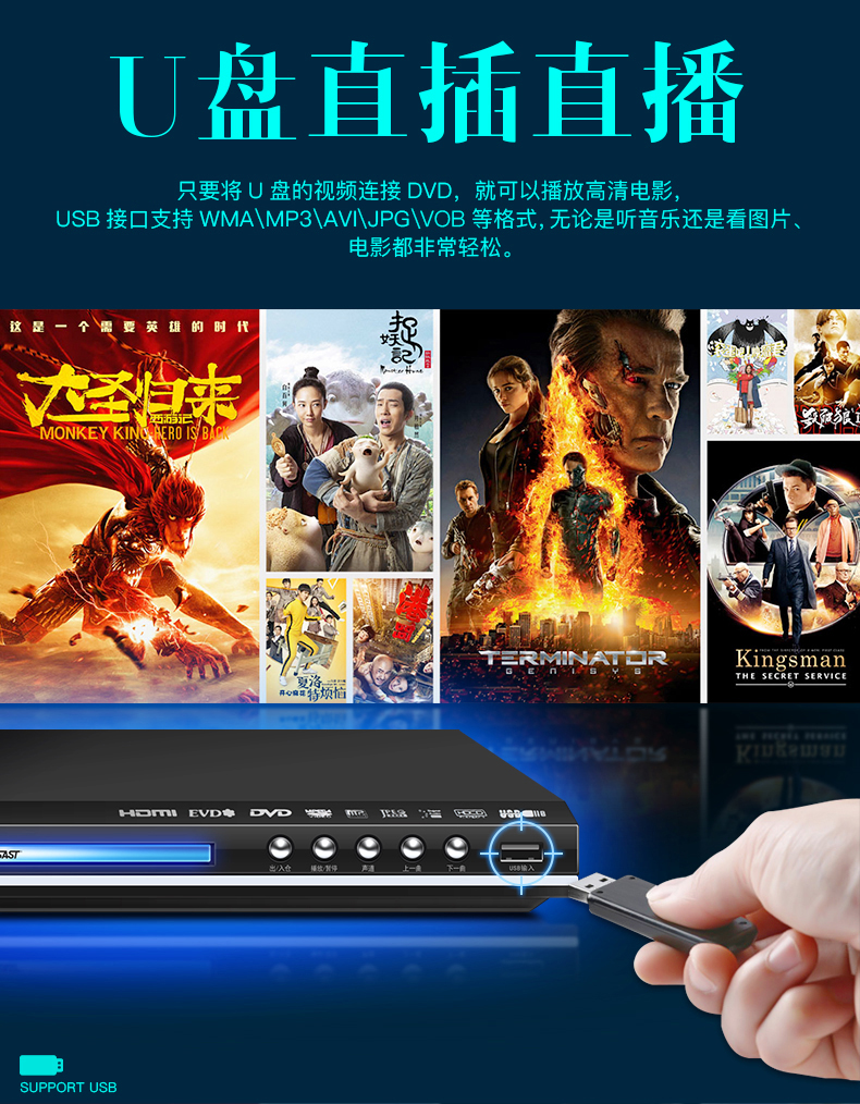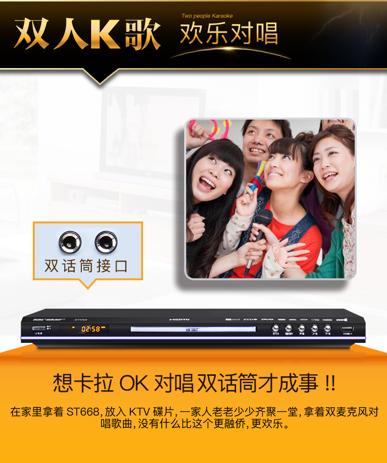 商品名称:先科(SAST) DVD播放机 USB光盘播放器(HDMI话筒高清CD机VCD 巧虎DVD光盘播放器 影碟机)(黑色) ST-668