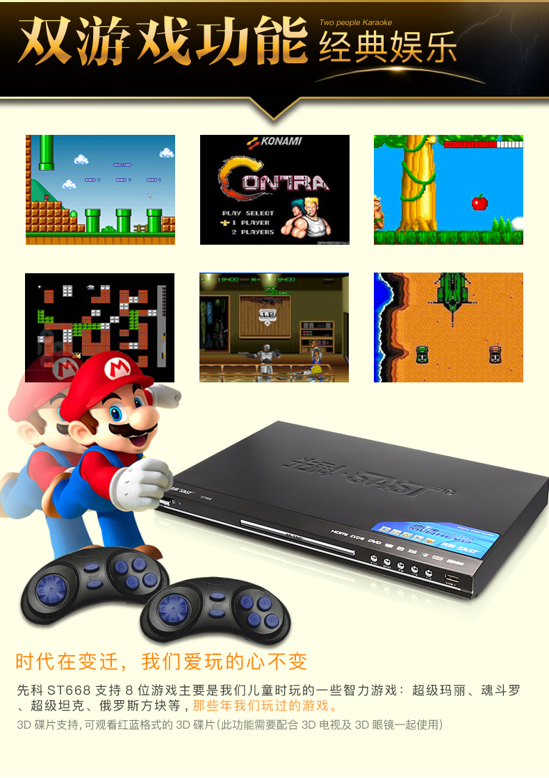 先科(SAST) DVD播放机 USB光盘播放器(HDMI话筒高清CD机VCD 巧虎DVD光盘播放器 影碟机)(黑色) ST-668