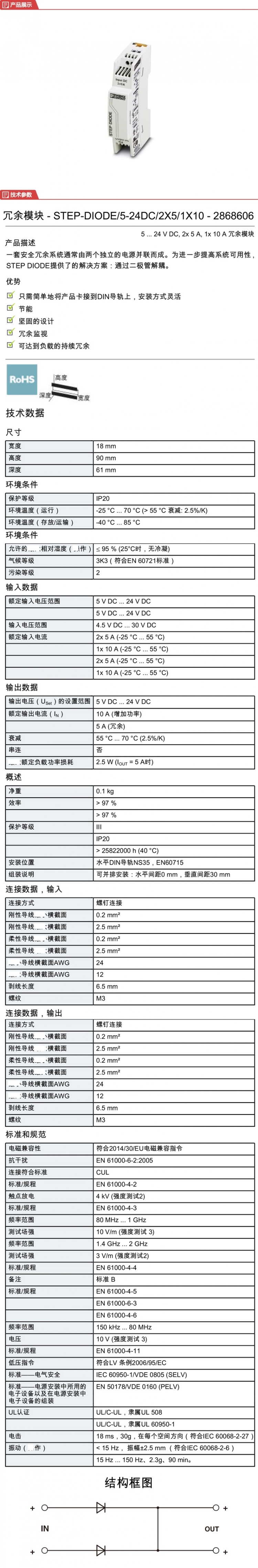 菲尼克斯 PHOENIX CONTACT 电源 STEP-DIODE/5-24DC/2X5/1X10