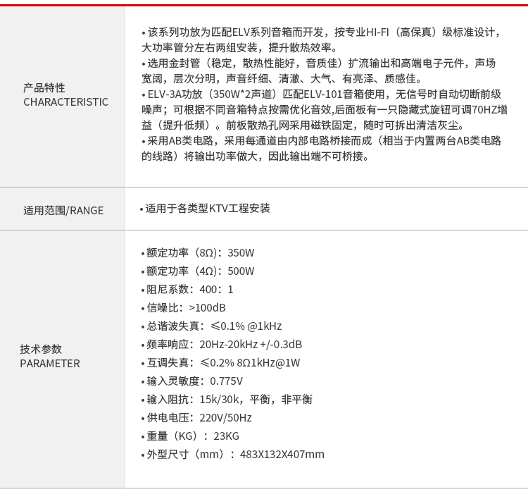 商品名称:得胜 TAKSTAR 功放 350W ELV-3A