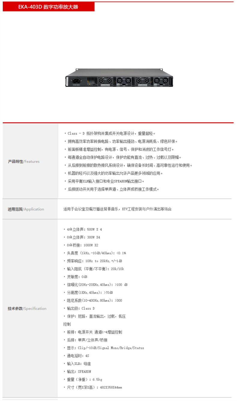 商品名称:得胜 TAKSTAR 数字功率放大器 专业 EKA-403D