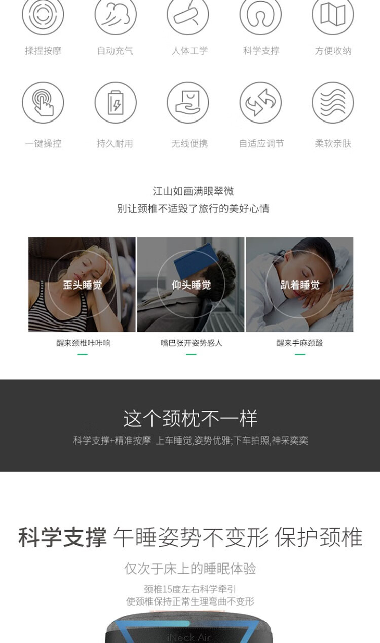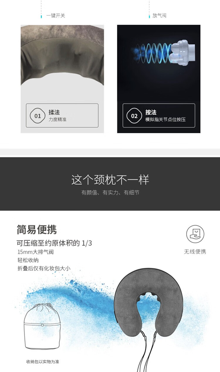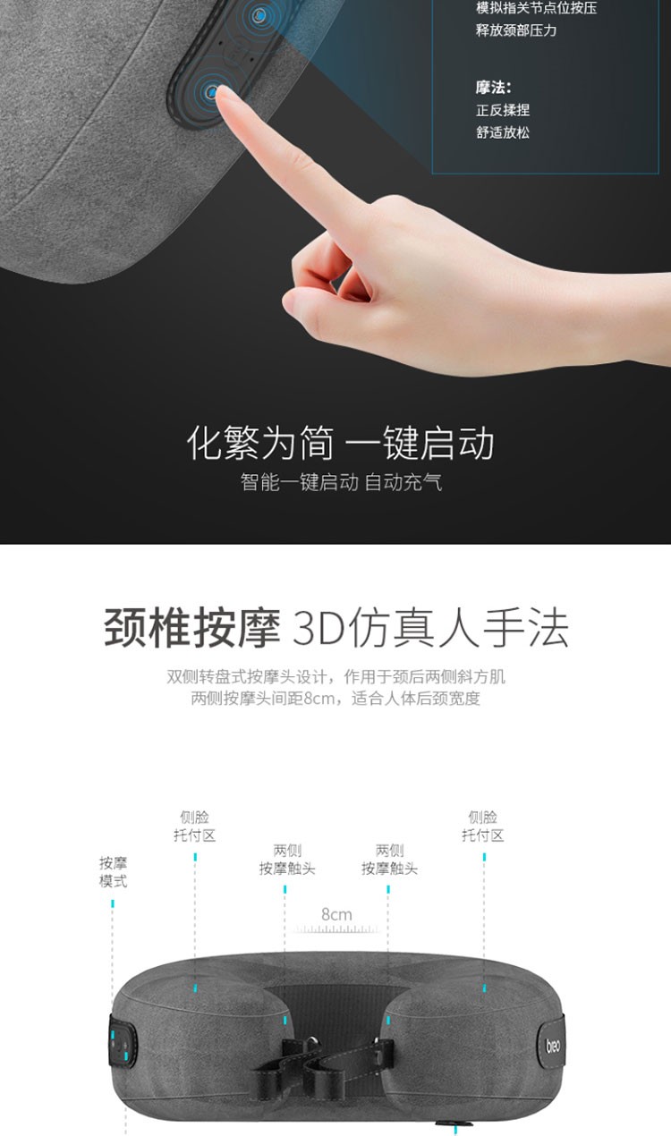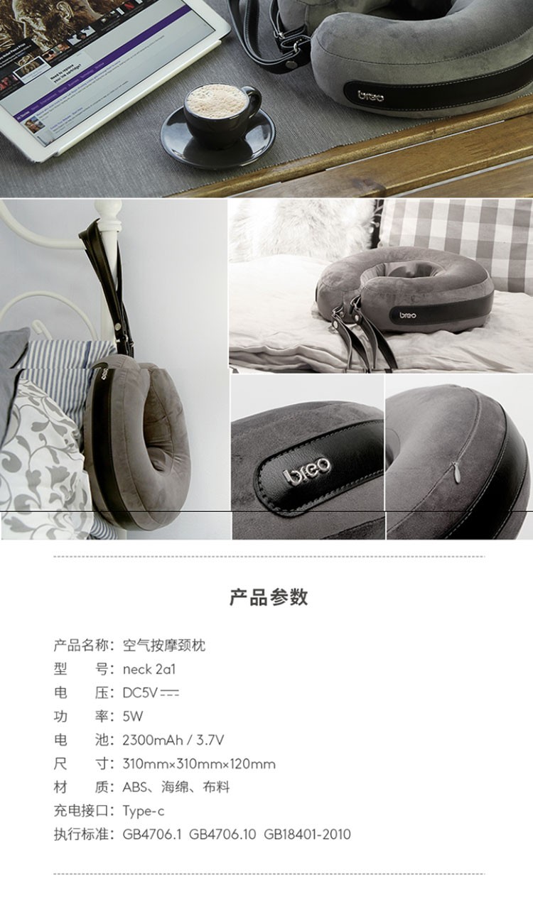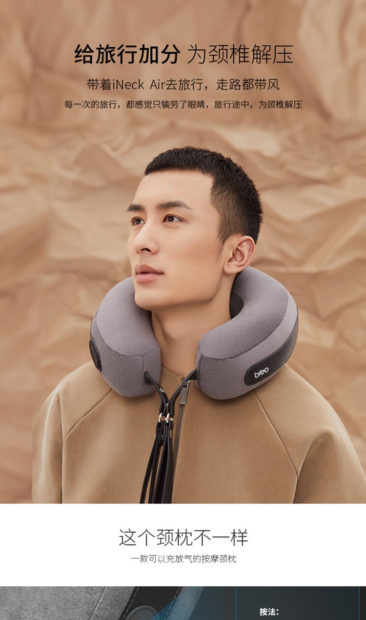 商品名称:倍轻松(breo)空气颈枕 颈椎按摩器 U型枕 护颈枕 一键充气 旅游午睡必备 iNeck Air 灰色