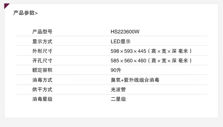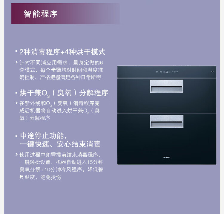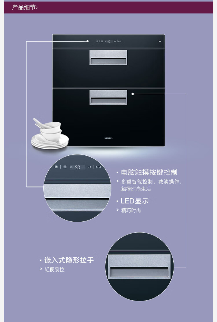 商品名称:西门子(SIEMENS)90升 除菌嵌入式消毒柜家用钢化玻璃 臭氧紫外线三重除菌 HS223600W