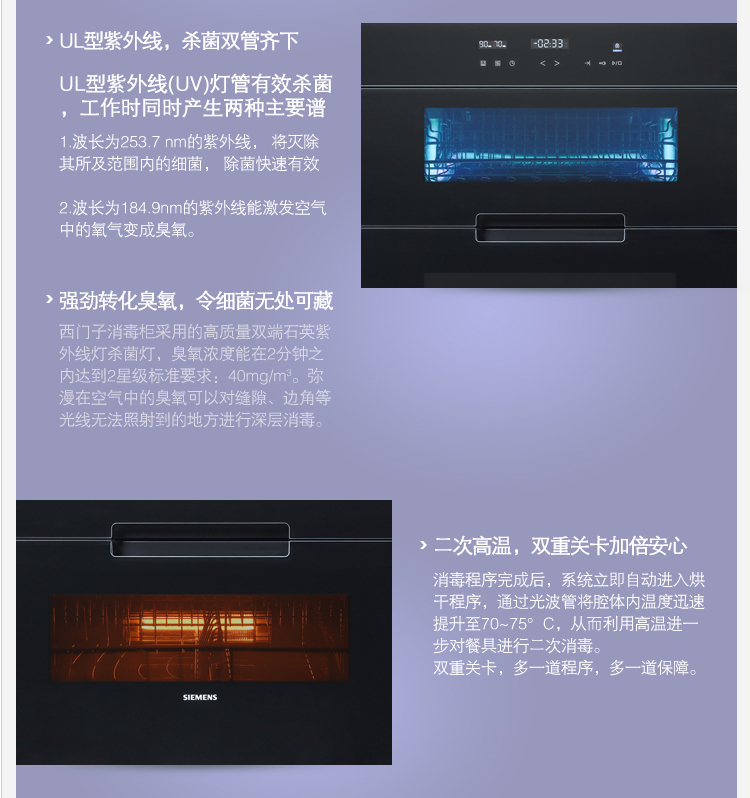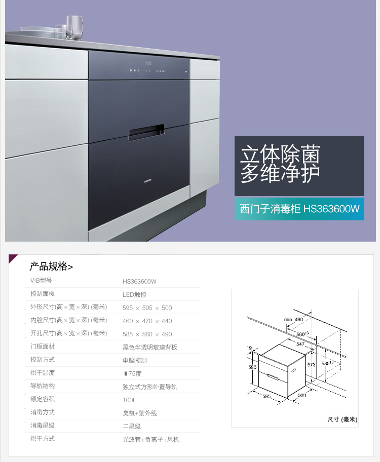 商品名称:西门子(SIEMENS) 100升 嵌入式家用消毒柜 二星级 碗筷消毒柜碗柜黑色 HS363600W